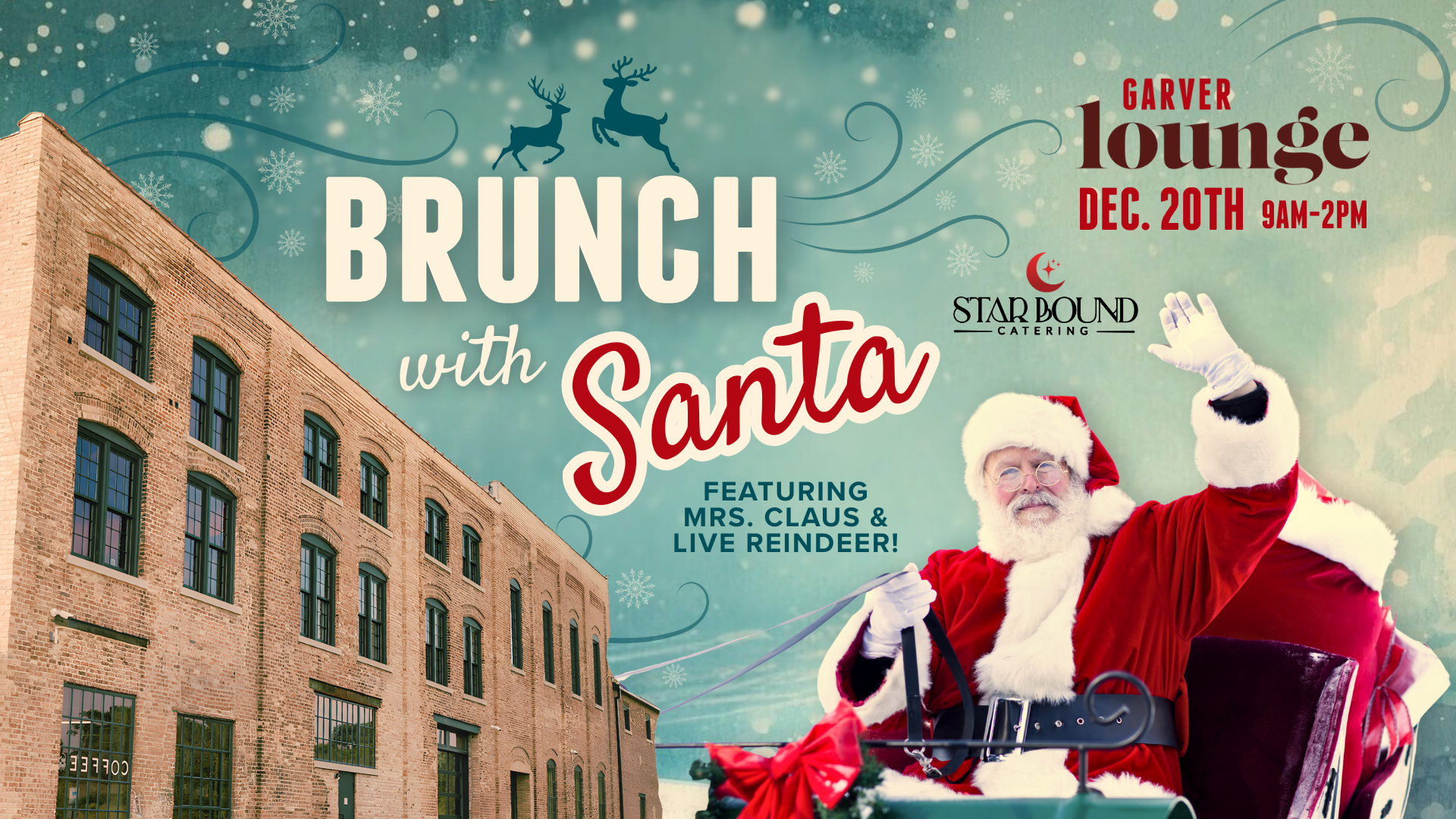 Celebrate the season with a festive brunch experience at Garver Feed Mill! Meet Santa and Mrs. Claus, see live reindeer, enjoy a holiday buffet, and explore family-friendly activities. Timed seating and kid VIP perks included.
