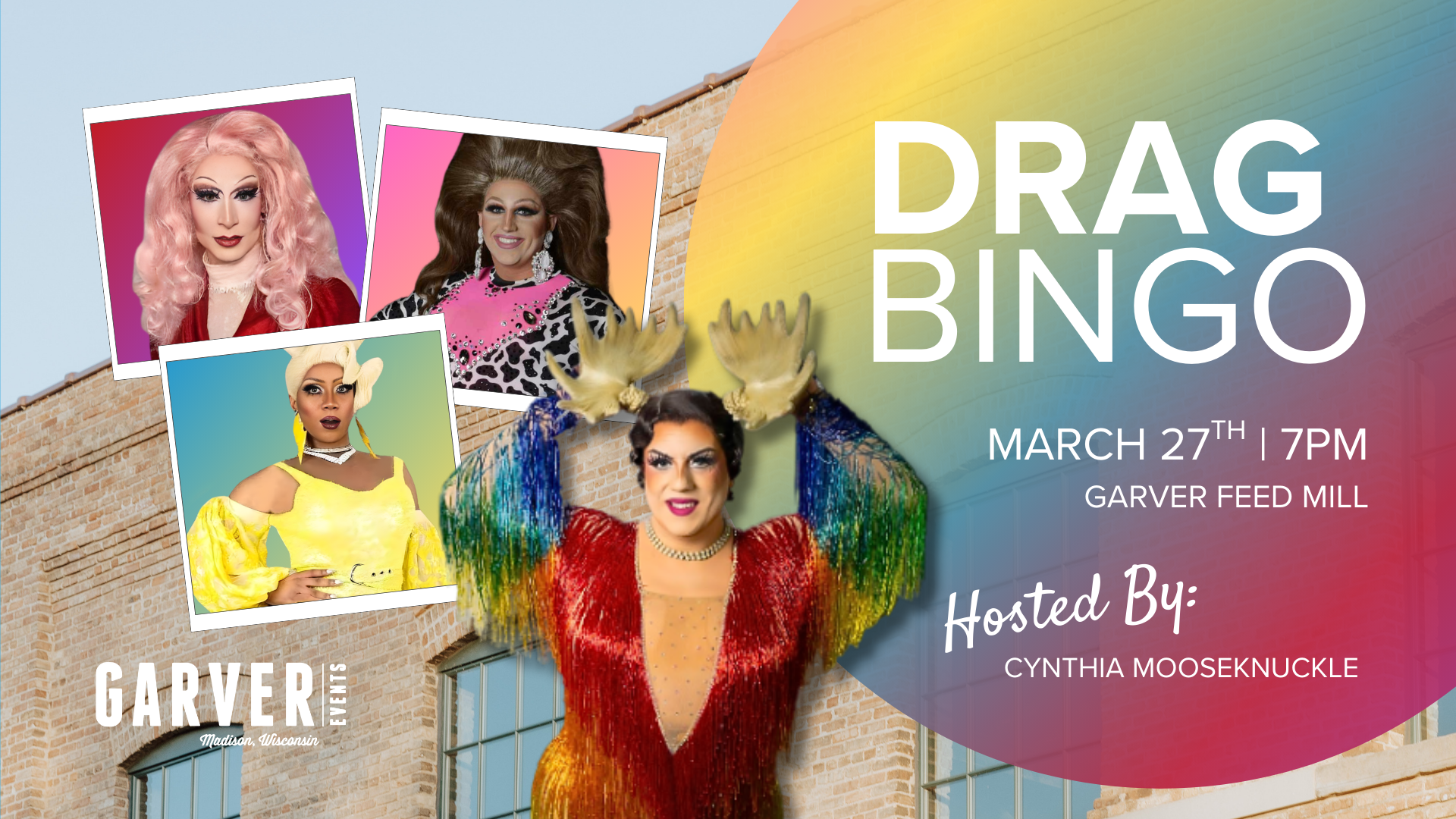 Cynthia Mooseknuckle is back with Sage Umbra, Malaiya Marvel, and Cowphusia Mylkhm for a lively evening of bingo, drag, cocktails, fish fry and tacos! $10 ticket includes 5 rounds of bingo with prizes plus drag performances. Doors at 6:30. First round of bingo at 7pm.