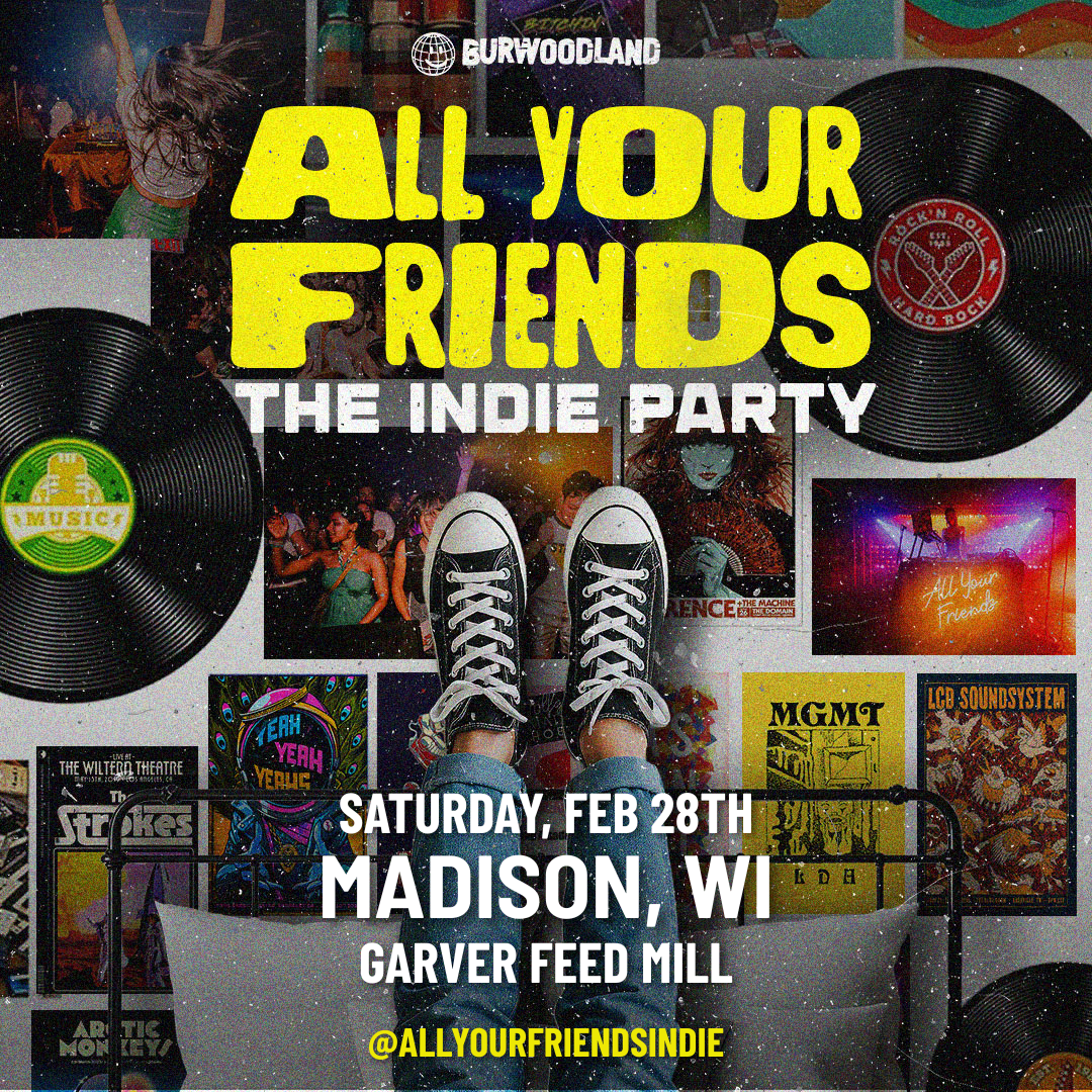 Event Link1 - https://dice.fm/event/6dna8b-all-your-friends-the-indie-dance-party-28th-feb-garver-feed-mill-madison-tickets?utm_source=Garver+Feed+Mill&utm_campaign=c40837e9dc-EMAIL_CAMPAIGN_2020_03_13_02_26_COPY_01&utm_medium=email&utm_term=0_c4164de195-c40837e9dc-162498121